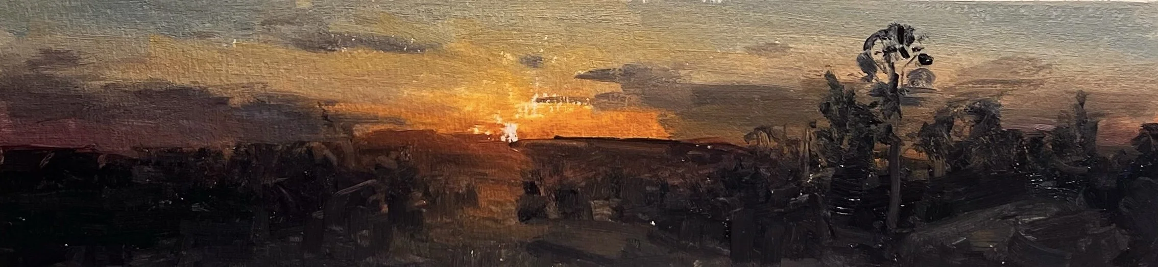These paintings are shaped outdoors, responding to weather, space, and the luminous shifts of the Australian landscape. Working en plein air, I aim to hold onto fleeting moments of calm and intensity in nature.